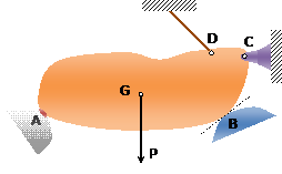 هذا النوع من الروابط يمنع الجسم من الانسحاب أو الانزلاق نحو اتجاه واحد. أي أنه يزيل درجة حرية واحدة. في هذه الحالة يعوض المستند عند عزل الجسم بقوة رد فعل تكون عمودية على سطح الاستناد. في حالة تماس نقطي، فإن رد الفعل يكون عموديا على المماس عند نقطة الربط.