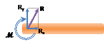 Ce type de liaisons supprime tout degré de liberté du corps. Il n’autorise aucune translation ni rotation. L’encastrement est remplacé par les composantes d’une réaction sur les axes de coordonnées et un moment, en sorte que sa valeur sera égale à la résultante des moments des forces extérieures par rapport au point d’encastrement.